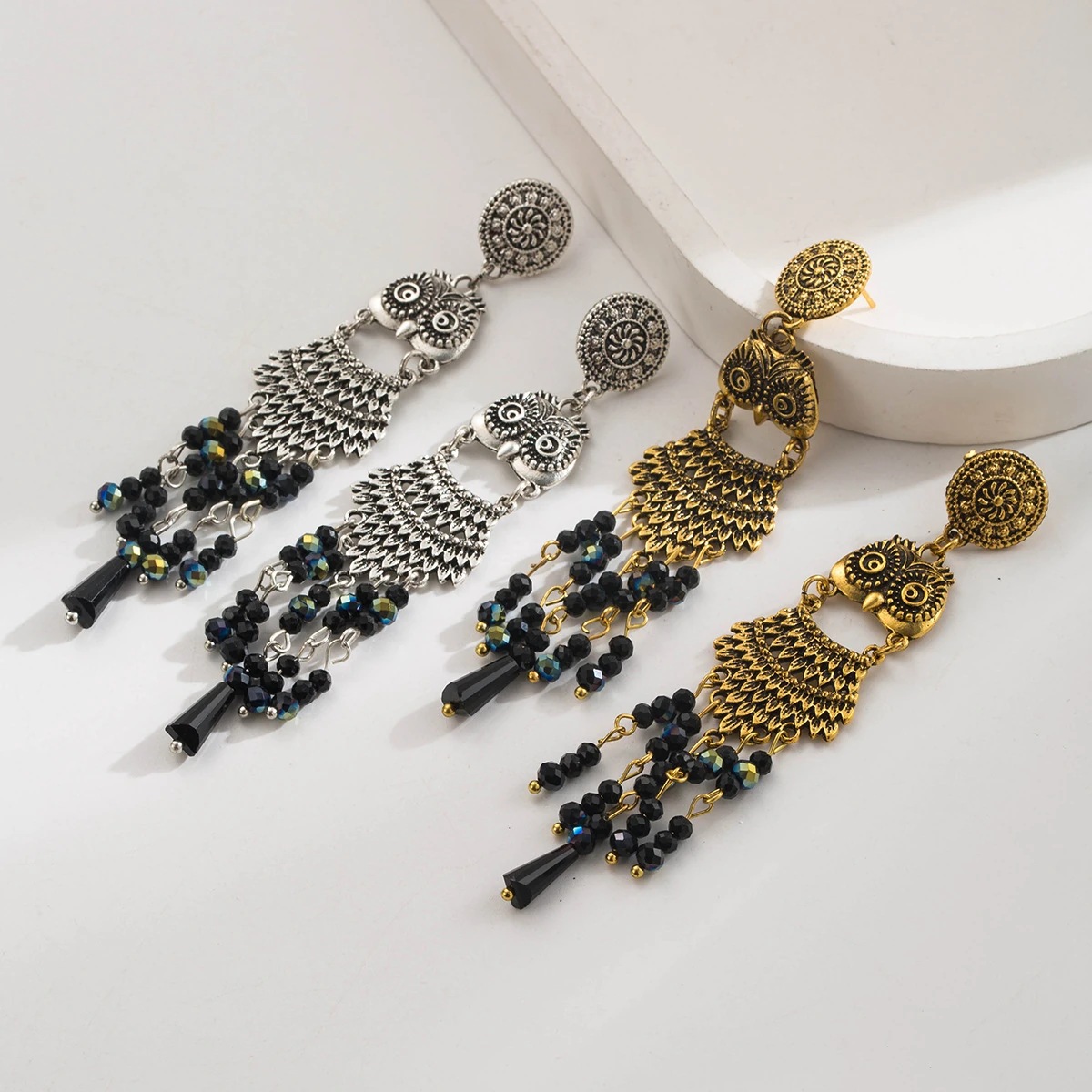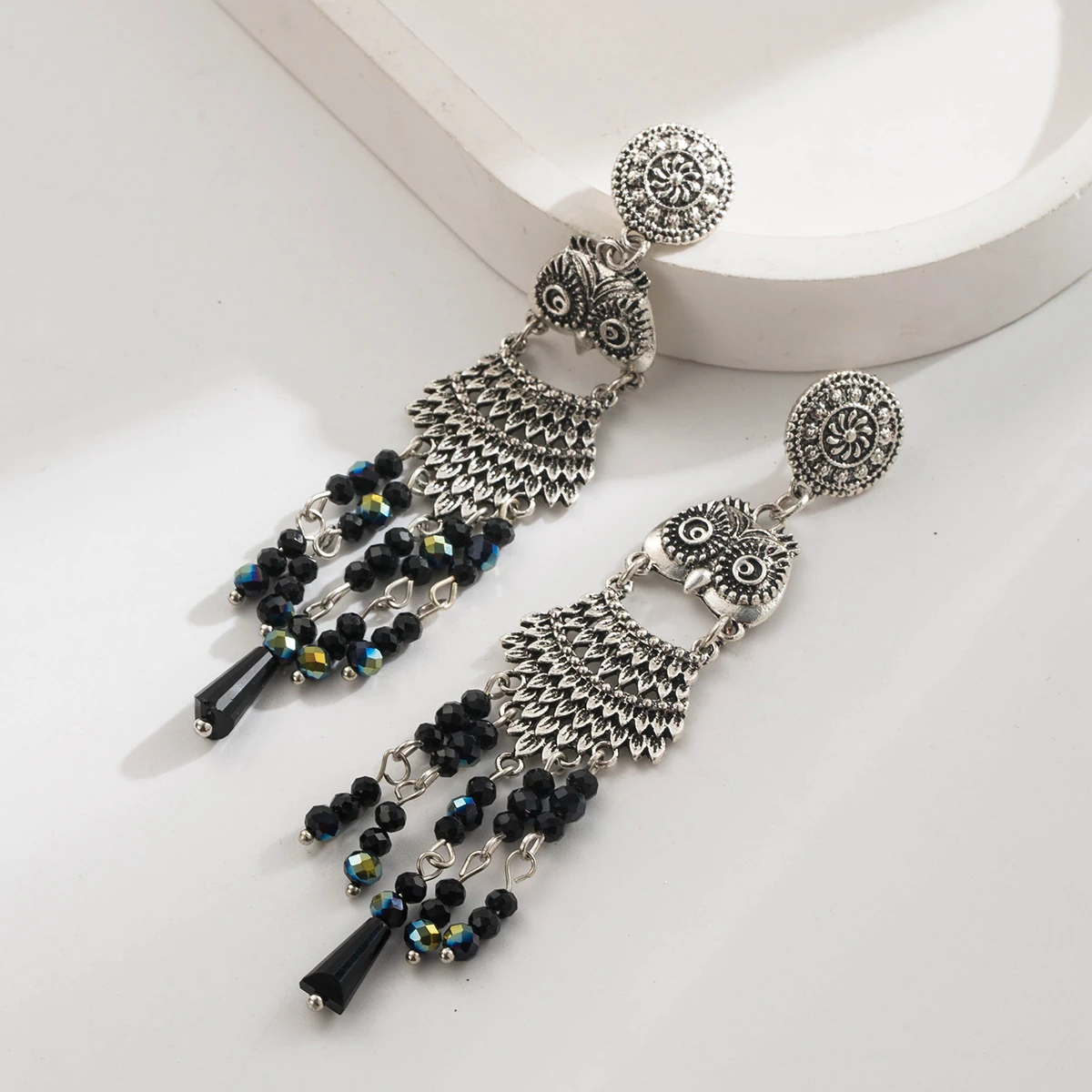 Elevate your bohemian style with these exquisite owl bead tassel earrings that blend ethnic charm with modern elegance. Perfect for women seeking unique, statement jewelry that captures attention and expresses individuality. These long, retro-inspired earrings feature intricate owl designs and flowing tassels that move gracefully with every step.