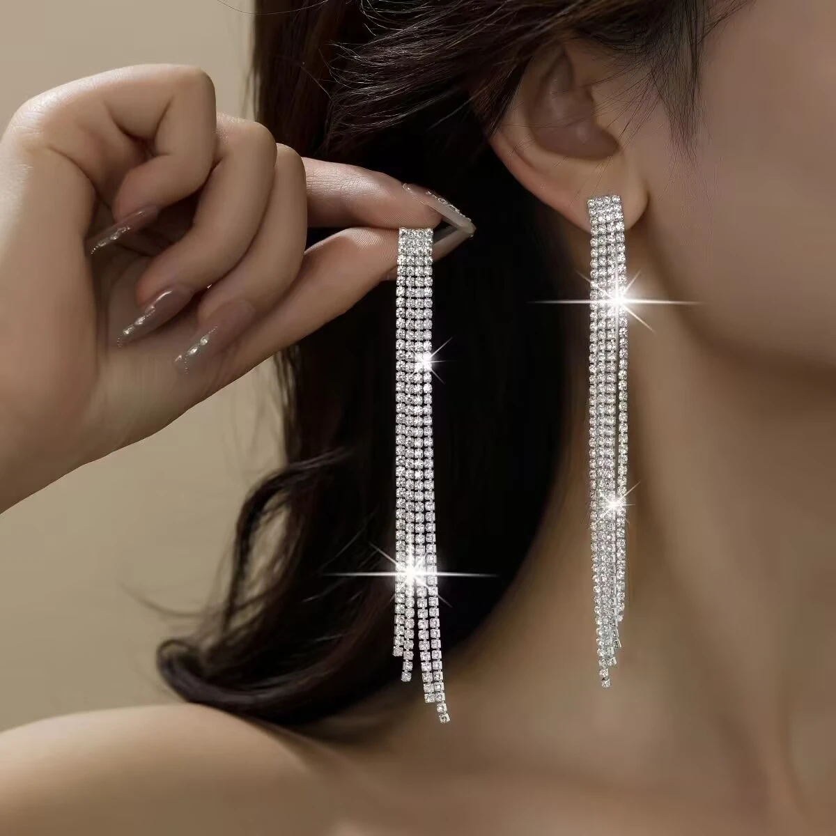 Elevate your style with our exquisite diamond tassel chain earrings, featuring premium rhinestone craftsmanship and elegant geometric designs. These luxury earrings combine European sophistication with modern fashion appeal, perfect for women seeking statement jewelry that commands attention.
