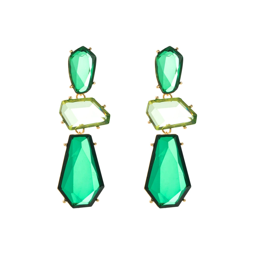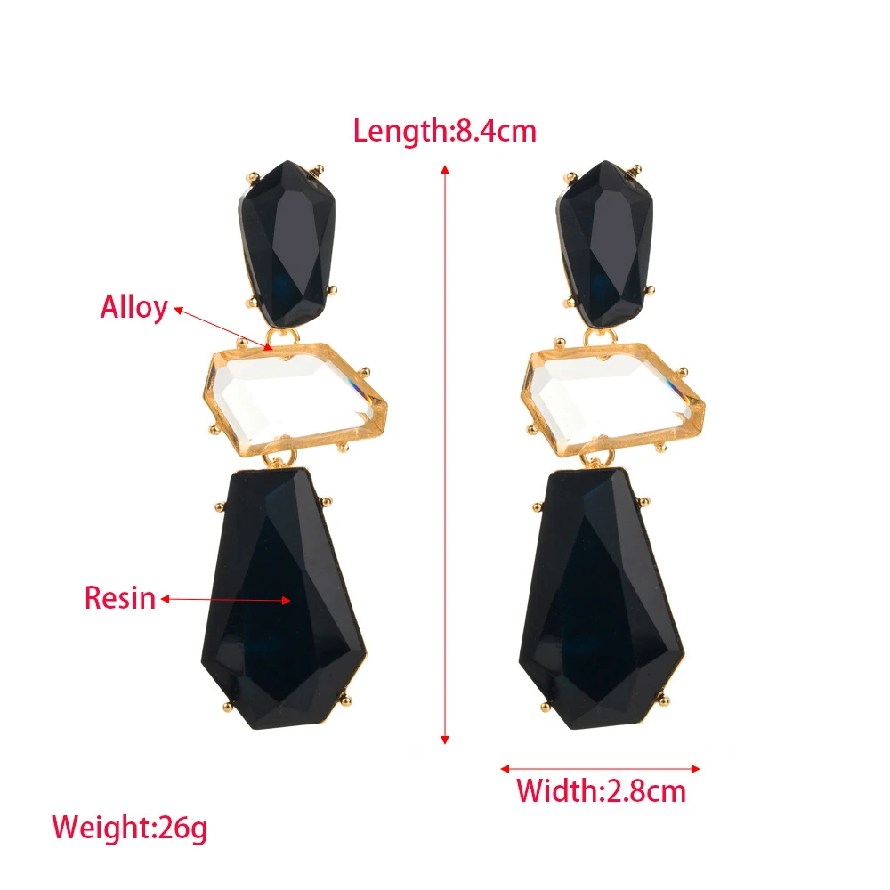 Geometric Polygon Earrings Women Long Drop Alloy Resin