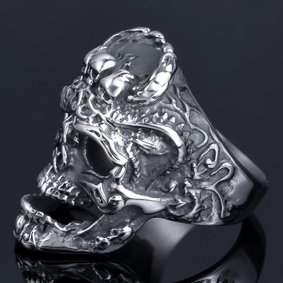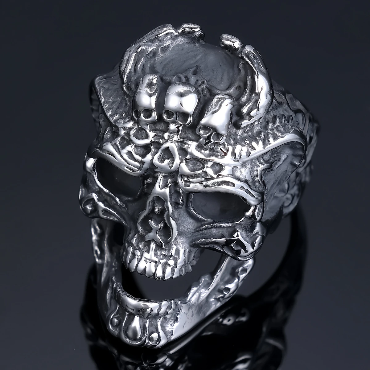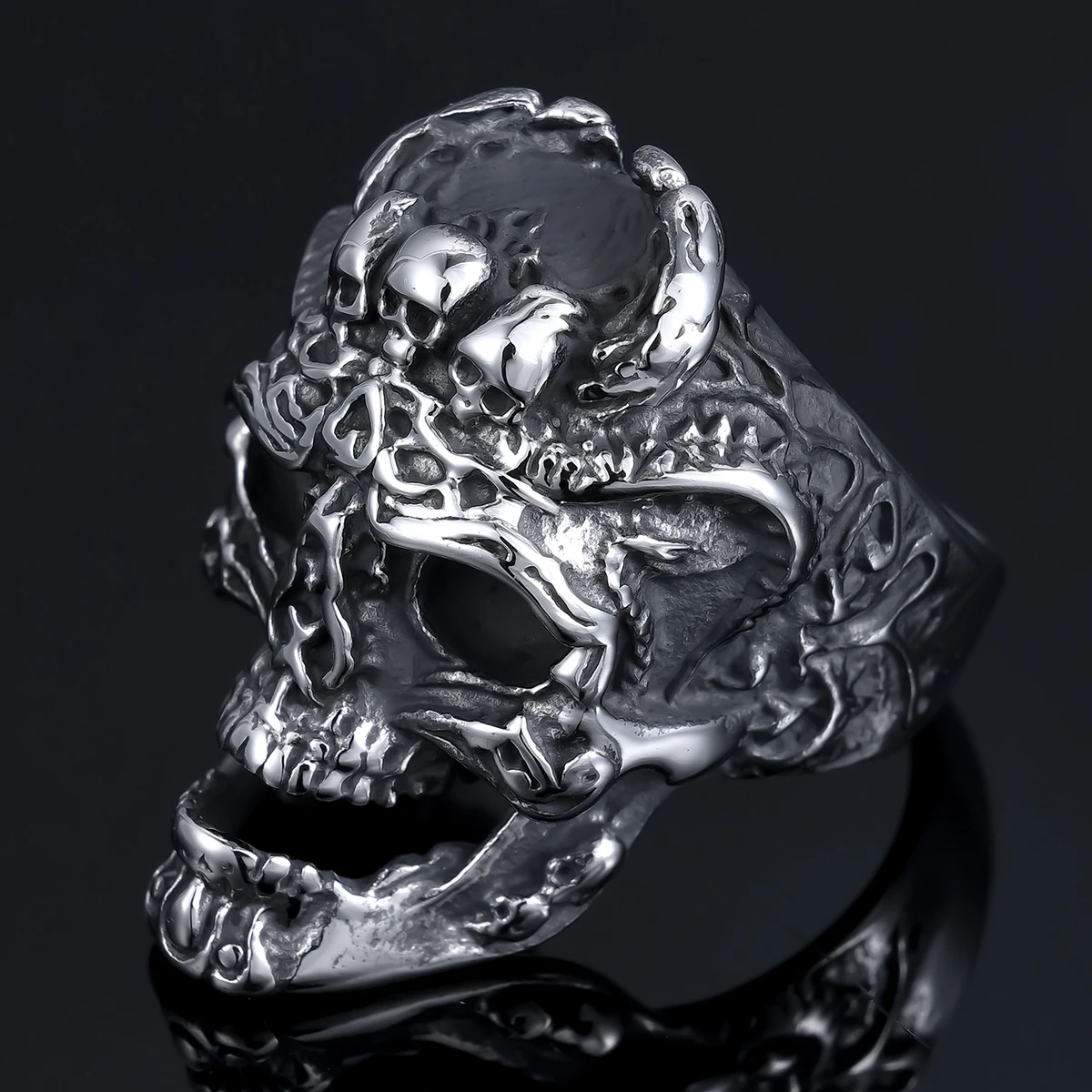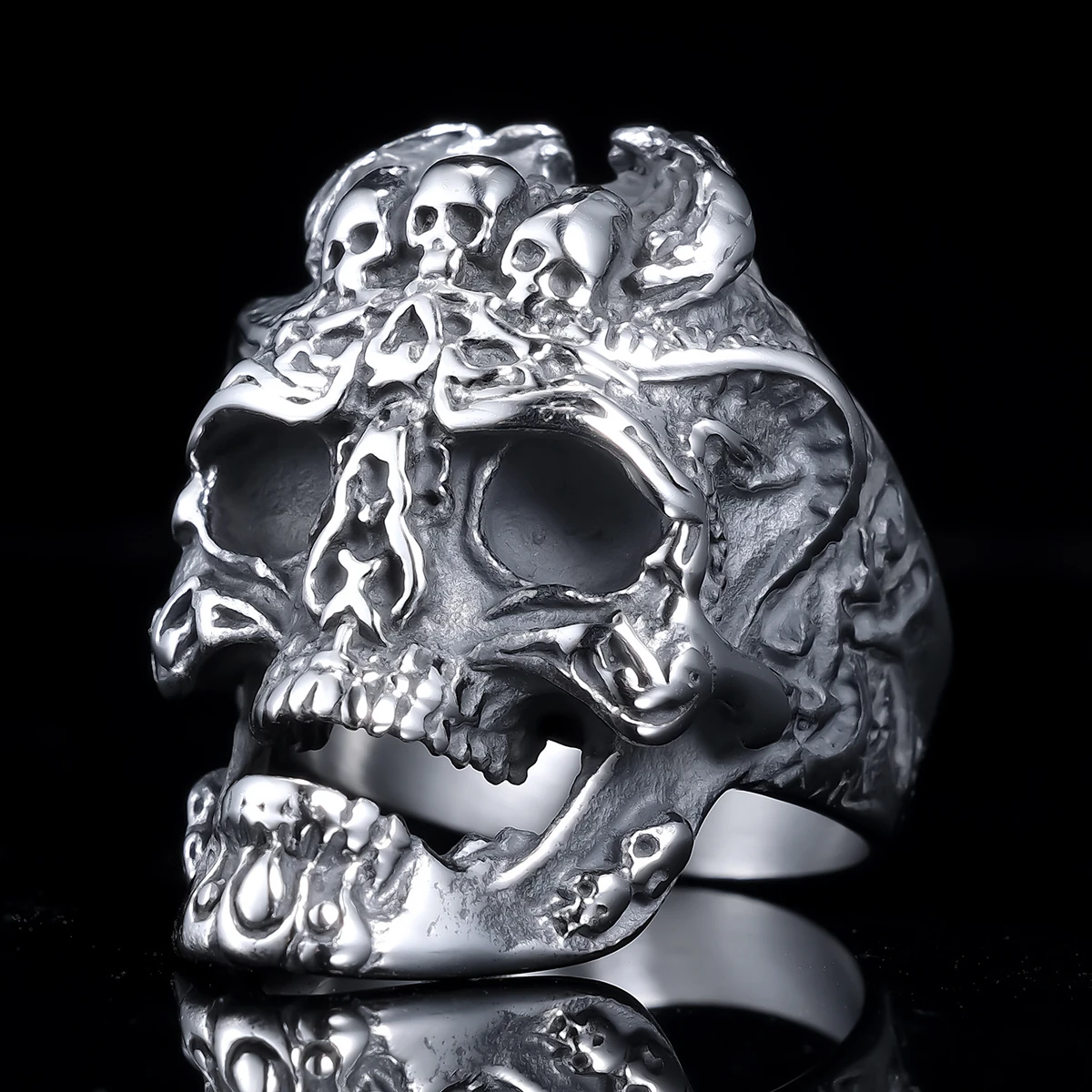 Make a bold statement with our Skull Head Combination Ring, designed for those who embrace individuality and punk aesthetics. This stainless steel ring features a unique combination of small and large skull heads, creating a striking visual appeal that stands out in any crowd. Perfect for expressing your rebellious spirit and distinctive personality.